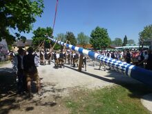 Maibaumaufstellen ohne Blasmusik, das wäre wie Suppe ohne Salz. Dies konnten, nicht übertrieben mehr als 2000 Besucher, das Maibaumaufstellen in Landsham bei herrlichem Sommerwetter erleben. Hatten die Landshamer Maibaumfreunde beim Einholen des Maibaumes am 29. März noch regnerisches Wetter, so hatte es der Wettergott am 1. Mai besonders gut gemeint.